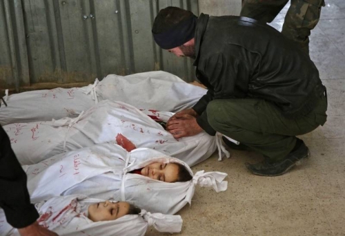 أبرياء الغوطة تحت جحيم براميل الموت واصلت قوات النظام السوري أمس، قصفها العنيف على الغوطة الشرقية المحاصرة قرب دمشق، ما تسبب منذ الأحد ا...