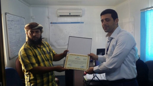 تكريم المنظمة الدولية للهجرة في عدن كرم الاستاذ قاسم محمد صالح مدير مشروع مياه المشرقة بلودر، المنظمة الدولية للهجرة ممثلة بمدير مكتب عد...