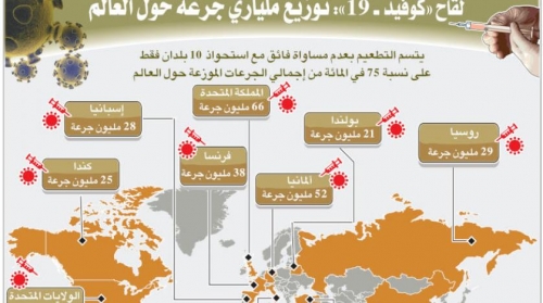 إنفوغراف| توزيع أكثر من ملياري جرعة من اللقاحات المضادة لكورونا تمكنت دول العالم من توزيع أكثر من ملياري جرعة من اللقاحات المضادة لـ«كوفيد - 19»، مع الس...