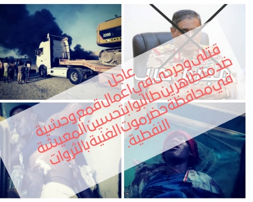 بالأسماء: قتلى وجرحى في قمع الأمن لتظاهرة بمحافظة حضرموت أعلنت مصادر طبية (الثلاثاء)، مقتل مدنيين اثنين وجرح نحو عشرة بعضهم بأعيرة نارية في قمع قوات أمنية لت...