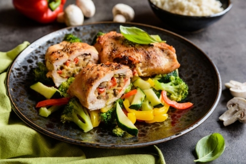 رولات الدجاج المحشية بالخضار والجبن رولات الدجاج المحشية بالخضار والجبن ... يمكن لعشاق الطعام الاستمتاع بنكهات مختلفة لطبخات صد...