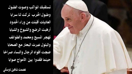 البابا فرنسيس في العراق.. هذا الآتي باسم الرب لمعانقة الإسلام ها نحن نسبّحه؛ هذا الآتي باسم الرب لمعانقة الإسلام. وها نحن ننحني أمامه؛ هذا القادم من الغ...