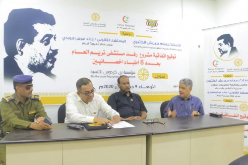 "بن كردوس" توقع اتفاقية رفد مستشفى تريم بعدد 6 أطباء أخصائيين وقعت بمديرية تريم اتفاقية رفد مستشفى تريم بعدد 6 أطباء أخصائيين بين مؤسسة بن كردوس للتنم...