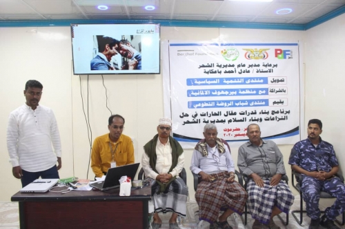 برنامج بناء قدرات عقال الحارات في حل النزاعات بحضرموت دشن المدير العام لمديرية الشحر بحضرموت الأستاذ عادل أحمد باعكابة، المرحلة الأولى من برنامج بناء قدرا...