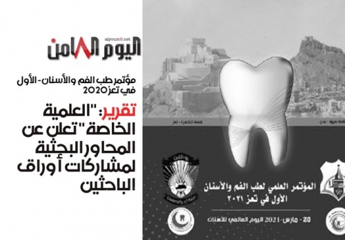 "العلمية الخاصة" تعلن عن المحاور البحثية لمشاركات أوراق الباحثين أعلنت اللجنة التحضيرية المشتركة من جامعة عدن وجامعة العطاء للعلوم والتكتولوجيا الخاصة بمؤتمر (طب الف...
