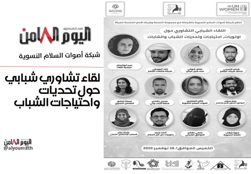لقاء تشاوري شبابي حول تحديات واحتياجات الشباب أعلنت شبكة اصوات السلام النسوية عن تنظيم لقاء شبابي تشاوري بالشراكة مع تحالف مجموعة التسعة وهيئة الأ...