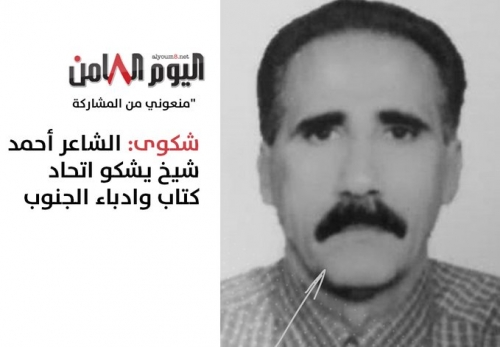 الشاعر أحمد شيخ يشكو اتحاد "كتاب وادباء الجنوب" تلقت صحيفة اليوم الثامن شكوى من الشاعر والفنان المسرحي أحمد عبدربه شيخ، شاكيا فيها اتحاد كتاب وادباء...