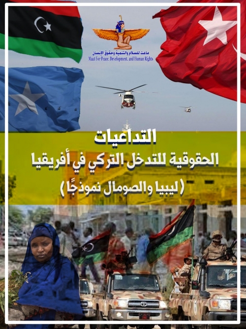 تقرير: "ماعت" تصدر دراسة عن التداعيات الحقوقية للتدخل التركي أصدرت مؤسسة ماعت للسلام والتنمية وحقوق الإنسان دراسة تحليلية بعنوان: "التداعيات الحقوقية للتدخل التر...