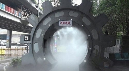 شركة صينية تبني نفقاً لتعقيم موظفيها من فيروس كورونا يخضع العمال في مجمع صناعي بمدينة تشونغتشينغ الصينية للرش بالمطهرات عند وصولهم للعمل في محاولة لمحارب...