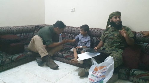 مشرف الفريق الإعلامي بالتحالف: أدعوا الجميع الحرص على أبنائهم زار مشرف الفريق الإعلامي في قيادة التحالف في عدن ناصر حبتر الطفل عمار عبدالرقيب الذي تعرض لإصابات مت...
