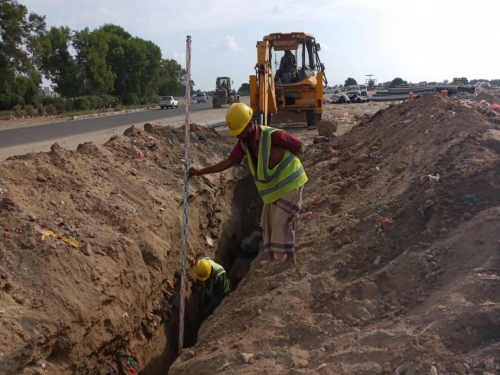 مواصلة العمل في مشروع خط ضخ مياه الصرف الصحي بمدينة إنماء يتواصل بوتيرة عالية العمل في مشروع خط ضخ مياه الصرف الصحي الرابط بين مدينة إنماء السكنية بمديرية الب...