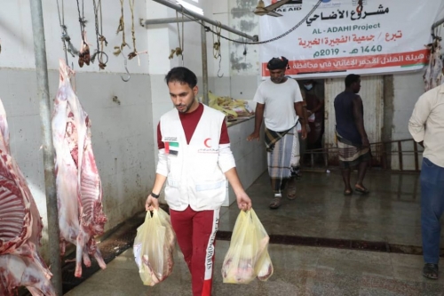 الهلال الإماراتي يوزع اضاحي العيد على اهالي حضرموت وزعت هيئة الهلال الأحمر الإماراتي، اليوم بمدينة المكلا بمحافظة حضرموت عددا من إضاحي العي...