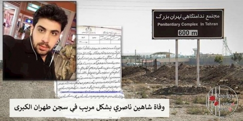 وفاة السجين شاهين ناصري بشكل مريب في سجن طهران الكبرى توفي شاهين ناصري بشكل مريب في سجن طهران الكبرى، وهو سجين شاب شهد تعذيب شهيد الانتفاضة نويد أفكاري. و...
