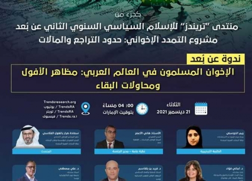 تقرير: "الاخوان" في العالم العربي.. مظاهر الأفول ومحاولات البقاء أكد خبراء ومتخصصون في الإسلام السياسي، في ختام سلسلة ندوات وفعاليات «منتدى تريندز للإسلام السي...