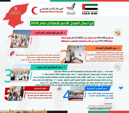 إنفو جرافيك| أبرز أعمال ومحطات هيئة الهلال الإماراتي في حضرموت سجلت دولة الإمارات العربية المتحدة بصمات إنسانية وخدمية وتنموية واضحة، عبر ذراعها الإنساني هيئة الهل...