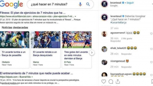 بصورة "غوغل".. ليفانتي يسخر من برشلونة بعد كارثة الـ7 دقائق استغل فريق ليفانتي فوزه المثير على برشلونة، السبت، ليسخر من رفاق ليونيل ميسي بطريقة "طريفة"، على حسا...