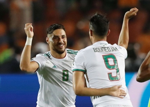 قائد المنتخب الجزائري "محرز" يحمل على كتفيه آمال مواطنيه تريث رياض محرز قبل أن يسدد الركلة الحرة في الثواني الأخيرة من المباراة ضد نيجيريا في نصف ن...