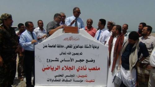 وضع حجر اساس لملعب الشهيد جعفر بخورمكسر قام ظهر الاحد بدر معاون أمين عام المجلس المحلي بمحافظة عدن وغسان الزامكي والدكتور رشاد شايع وكيلا مح...