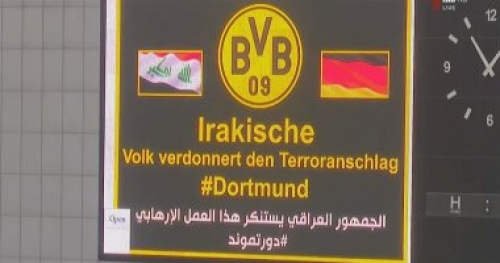 رسالة دعم من الدورى العراقى إلى دورتموند فى لقطة رائعة بالدورى العراقى وقف فريقا الزوراء ومنافسه نفط الوسط دقيقة صمت لإدانة الحادث الإرهابى ا...