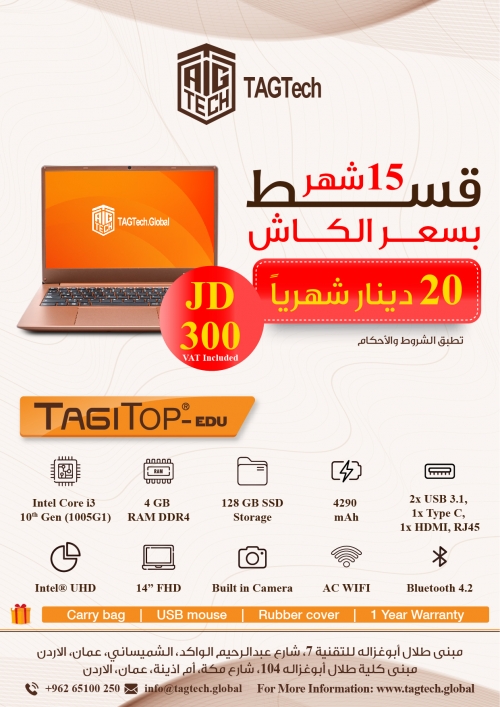 "أبوغزاله" تطرح جهاز TAGITOP EDU التعليمي للبيع مباشرة أعلنت شركة طلال أبوغزاله للتقنية، إحدى شركات “طلال أبوغزاله العالمية” عن طرحها برنامج &l...