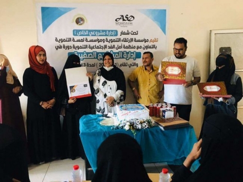 حفلاً تكريميا بمناسبة تخرج دفعة من المتدربين في إدارة المشاريع الصغيرة اقامت مؤسسة الارتقاء التنموية في عدن ومؤسسة لمسة التنموية بالتعاون مع منظمة امل الغد الاجتماعي...