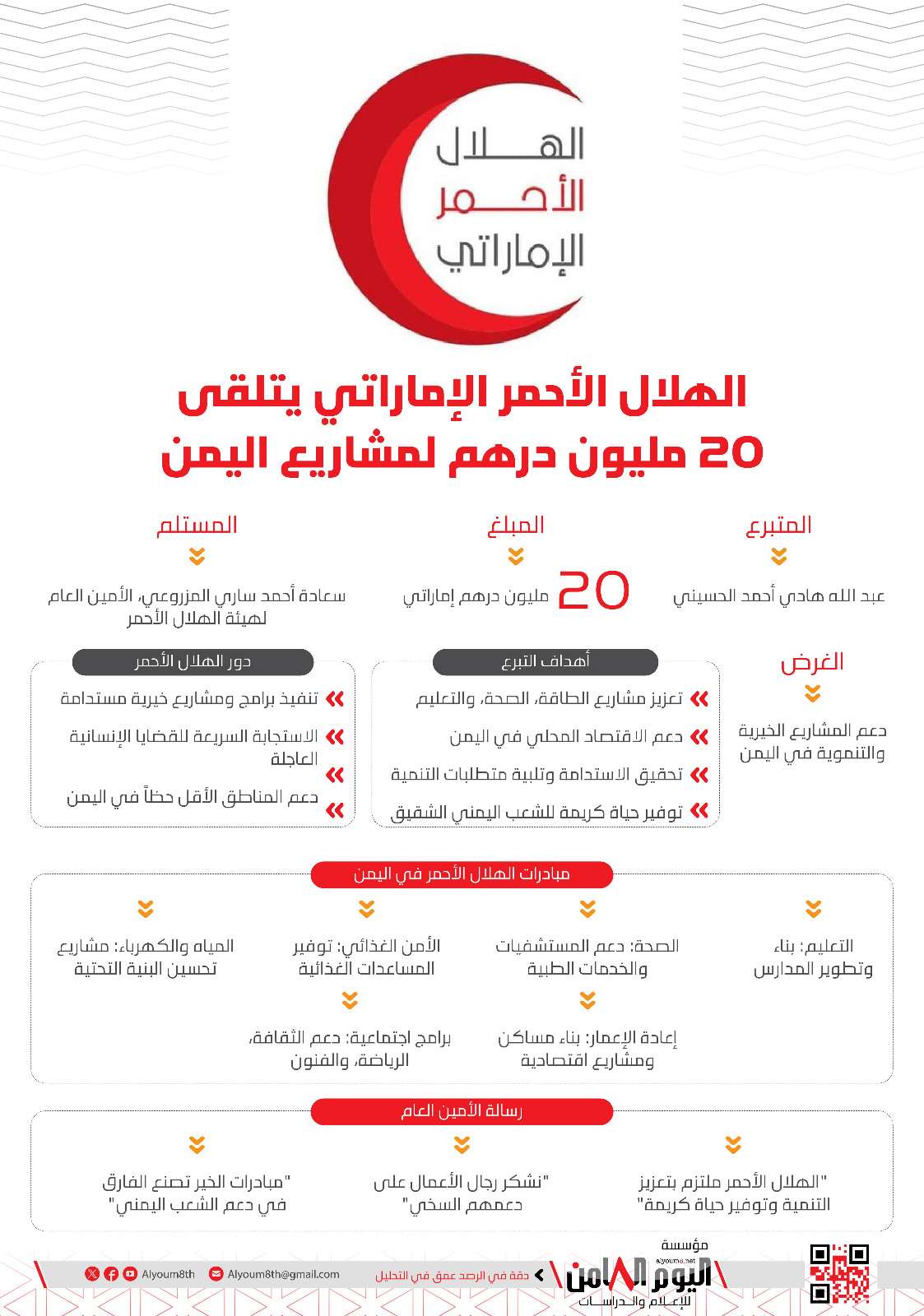 الهلال الأحمر الإماراتي يتلقى 20 مليون درهم لمشاريع اليمن