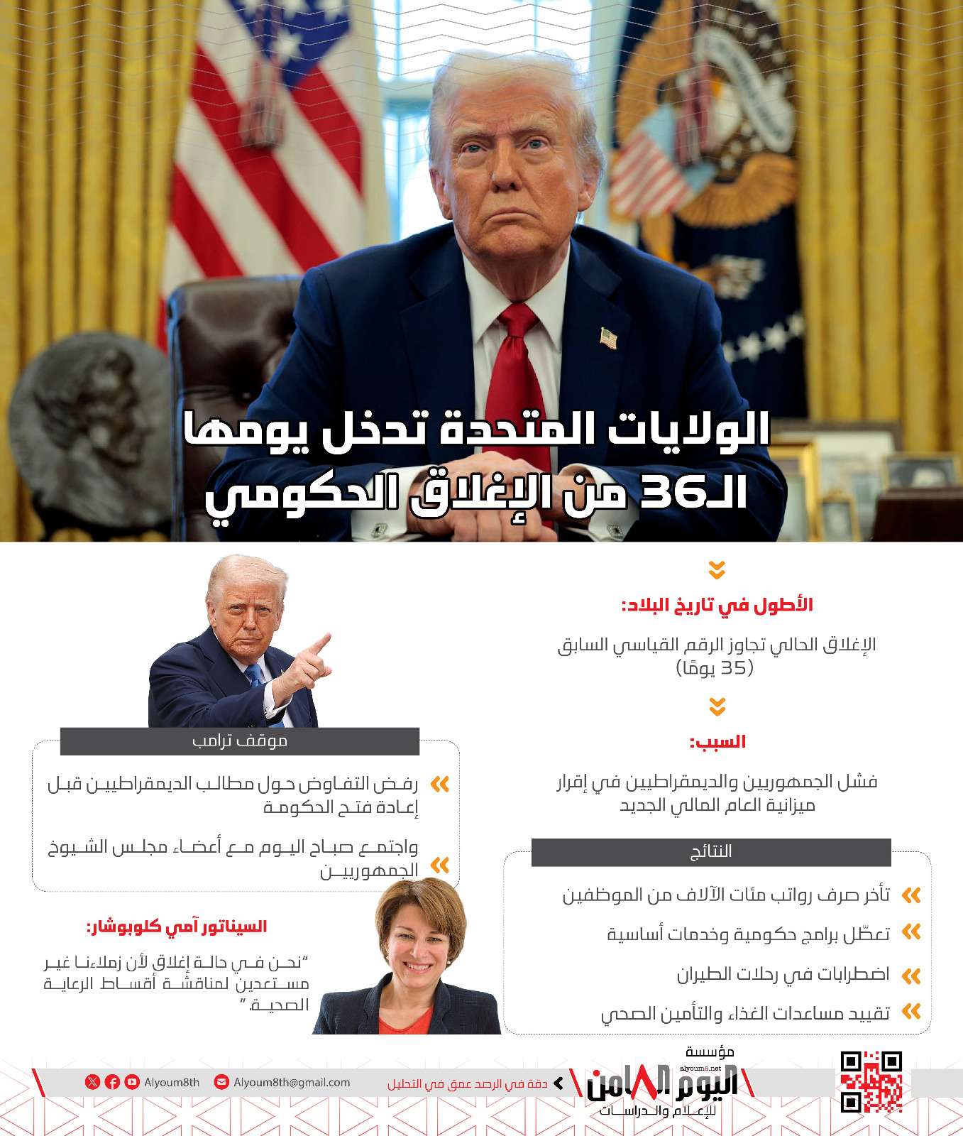 الولايات المتحدة تدخل يومها الـ36 من الإغلاق الحكومي