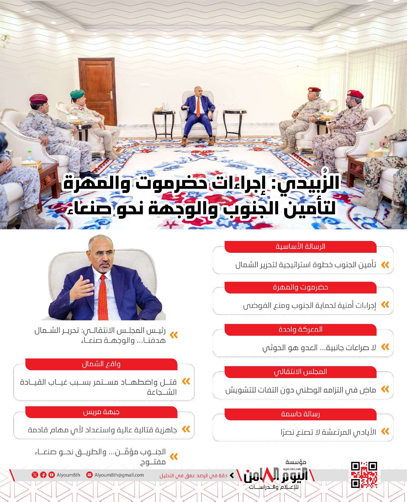 الزُبيدي: إجراءات حضرموت والمهرة لتأمين الجنوب والوجهة نحو صنعاء