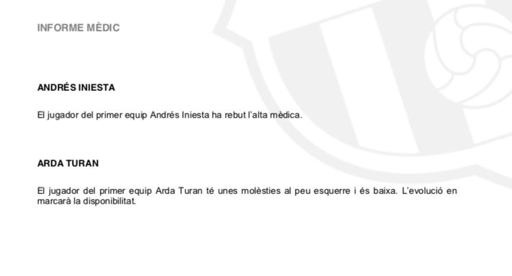 تلقى النجم أندريس إنييستا، لاعب وسط برشلونة الإسبانى، التصريح الطبى بالعودة للمشاركة فى المباريات، اليوم الجمعة، بعد شفائه من الإصابة العضلية التى ضربته فى مباراة الجولة السابعة من الدوري الإسباني، التى انتهت بفوز الفريق الكتالونى على لاس بالماس بثلاثية نظيفة.