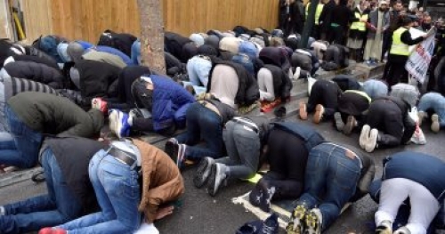 مسلمو فرنسا يؤدون الصلاة فى الشوارع
