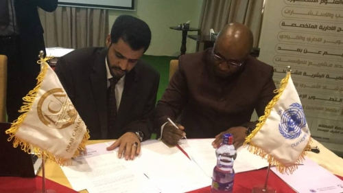 وقد وقع هذا البروتكول عن جامعة الأمم المتحدة للسلام البروفسور . صموئيل كالي إوسي المدير البرنامج الإقليمي لأفريقيا والأكاديمية العربية الكندية للعلوم المتطورة والتدريب والاستشارات ACA الدكتور/ عياس محمد العيسي رئيس الأكاديمية .