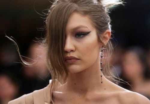 عارضة الأزياء الشهيرة جيجي حديد خلال حضورها معرضا فنيا في نيويورك