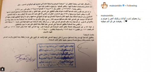 فيما نشرت مى عز الدين صورة من وثيقة الحكم، علقت عليها: "ربنا يحميكى انتى وأولادك ويكتبلك الخير يا حبيبتى ويعوضك عن كل اللى شوفتيه".