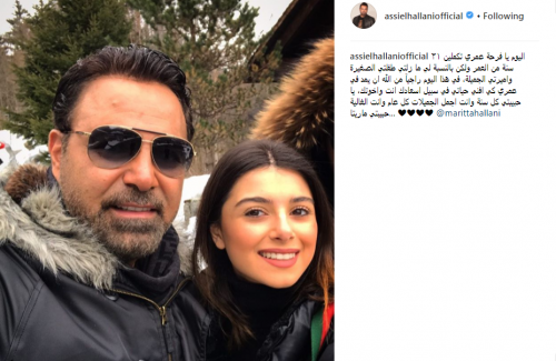 حرص المطرب اللبنانى عاصى الحلانى على معايدة ابنته ماريتا بعيد ميلادها، مؤكدا أنه سيفنى حياته من أجل إسعادها.