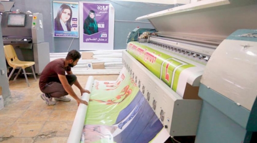 عامل مطبعة في بغداد يطبع ملصقات انتخابية