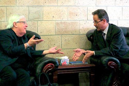 وصل مبعوث الأمم المتحدة إلى اليمن مارتن جريفيثس أمس إلى مطار صنعاء برفقة رئيس بعثة الاتحاد الأوروبي، انتونيا كالفوبيورتا، في زيارة ثانية للمبعوث في أقل من أسبوعين.