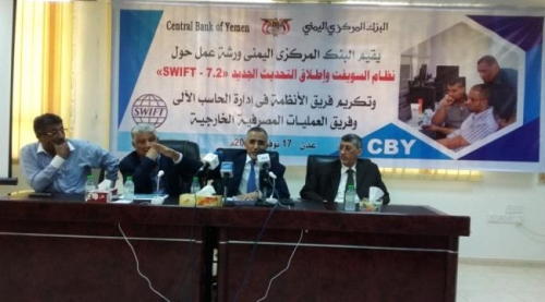 نظم البنك المركزي اليمني اليوم بالعاصمة عدن ورشة عمل حول نظام السويفت واطلاق التحديث الجديد (2-7-SWIFT).