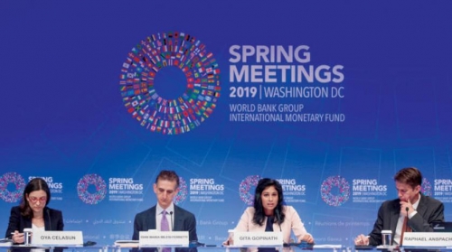 جانب من المؤتمر الصحافي لصندوق النقد والبنك الدولي في واشنطن