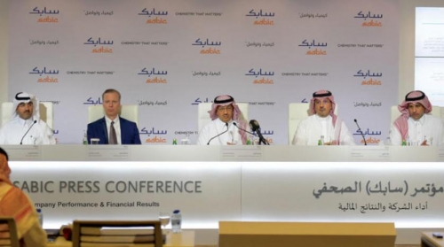 جانب من المؤتمر الصحافي لإلقاء الضوء على أداء شركة «سابك»