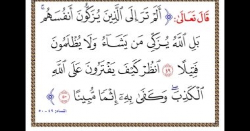 أَلَمْ تَرَ إِلَى الَّذِينَ يُزَكُّونَ أَنْفُسَهُمْ، بَلِ اللَّهُ يُزَكِّي مَنْ يَشاءُ وَلا يُظْلَمُونَ فَتِيلًا. انْظُرْ كَيْفَ يَفْتَرُونَ عَلَى اللَّهِ الْكَذِبَ وَكَفى بِهِ إِثْماً مُبِيناً.
