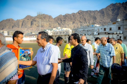 في امسية كروية جسدت معها اسمى معاني الوفاء استضاف ملعب الفقيد حسين باوزير بنادي شمسان المعلا عصر اليوم السبت فعالية أربعينية فقيد الجنوب قائد لواء الاول دعم واسناد الشهيد القائد منير اليافعي ( ابو اليمامة ) ، في مشهد رسمت من خلاله لوحة تعبر عن مظاهر مبادلة الوفاء بالوفاء اكتست بألوان ومشاعر صادقه عرفانا بما قدمه شهيد الوطن من ادوار نضالية وفدائية مشهودة خلال مشواره الحافل بالعطاء الوطني في مقام العشق للوطن الحر ، تنبعث من المنبت والقيم والمواقف .