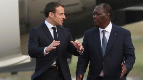 رئيس ساحل العاج الحسن واتارا يستقبل إيمانويل ماكرون في أبيجان