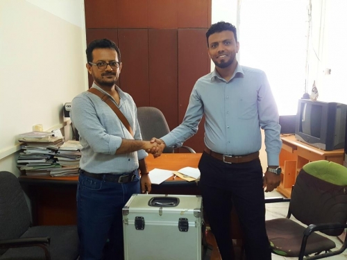 عملية إستلام وتسليم مهام العمل الإعلامي والإداري بين كلا من الزميلين نشوان محمد العثماني ونبراس منصو