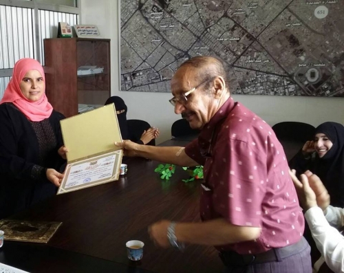 كرم المجلس المحلي في مديرية الشيخ عثمان صباح الاربعاء المهندسة سميرة عبدالله نصر رئيسة جمعية الفردوس.