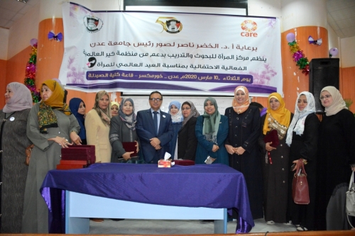 نظم مركز المرأة للبحوث والتدريب جامعة عدن صباح الثلاثاء الموافق(١٠مارس٢٠٢٠م) بكلية الصيدلة, بدعم من منظمة كير العالمية ) حفلاً خطابياً تكريمياً وفنياً بمناسبة عيد المرأة العالمي وتزامناً مع إحتفالات الجامعة بيوبيلها الذهبي .