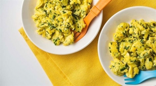 البيض طعام غني بالمغذيات المطلوب للنمو، ويمكن إضافة بعض أوراق السبانخ لتعزيز هذه الفوائد، لأن السبانخ غني بالحديد والكالسيوم ومعادن أخرى.