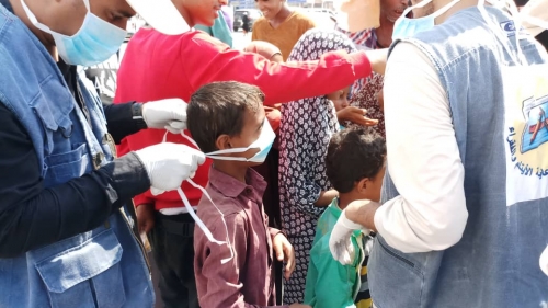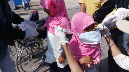 قام الفريق من اعضاء مؤسسة امل لرعاية الايتام والفقراء والاعمال الانسانية بتوعية الشرائح المستهدفه من معرفه الفيروس و اعراضه والوقايه منه ، و تم توزيع الكمامات والجلفز على المستهدفين .