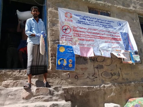 دشنت منظمة كير العالمية ،وبتمويل من برنامج الغذاء العالمي"WFP"، امس الأحد ،صرف المساعدات الغذائية لشهر مارس عام 2020م للحالات الأشد فقراً والمحتاجة بمديرية سرار يافع محافظة أبين.