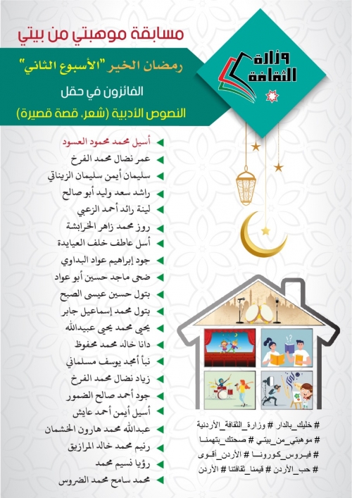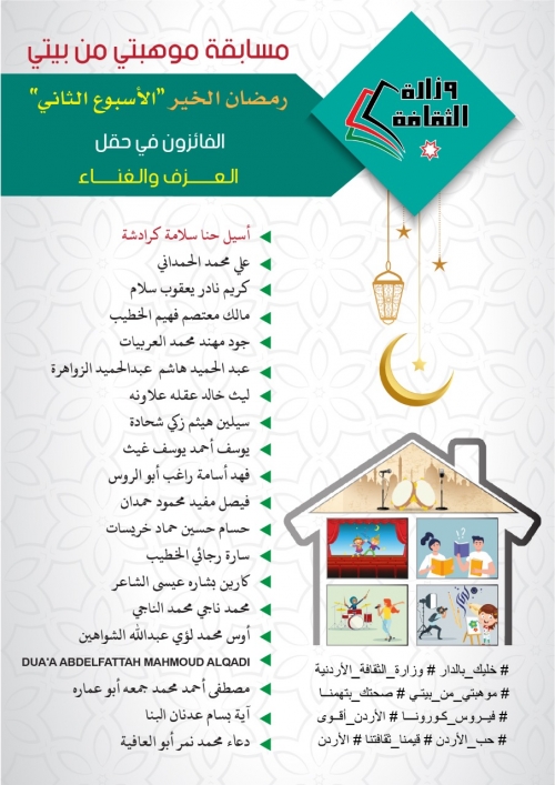 الأردن: الفائزون بمسابقة موهبتي من بيتي في أسبوعها الخامس
