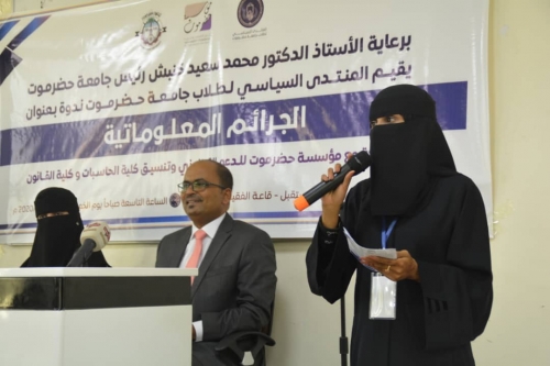 المنتدى السياسي لطلاب جامعة حضرموت ينظم ندوة بعنوان الجرائم المعلوماتية